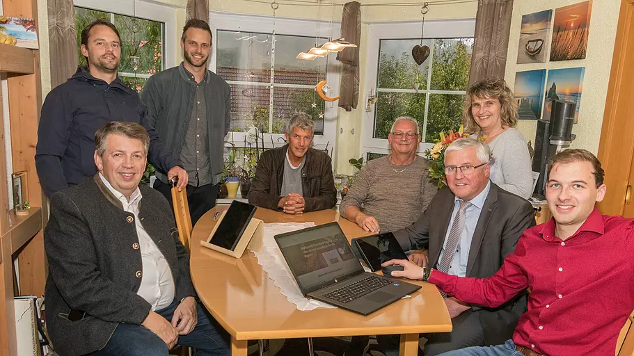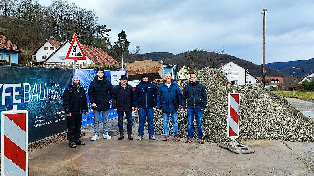 Startschuss zum Glasfaserausbau in Zeitlofs: Stephan Dausacker (von links), Matthias Metz, Mazhar Akinti, Matthias Theisen, Matthias Hauke und Anton Rottenberger